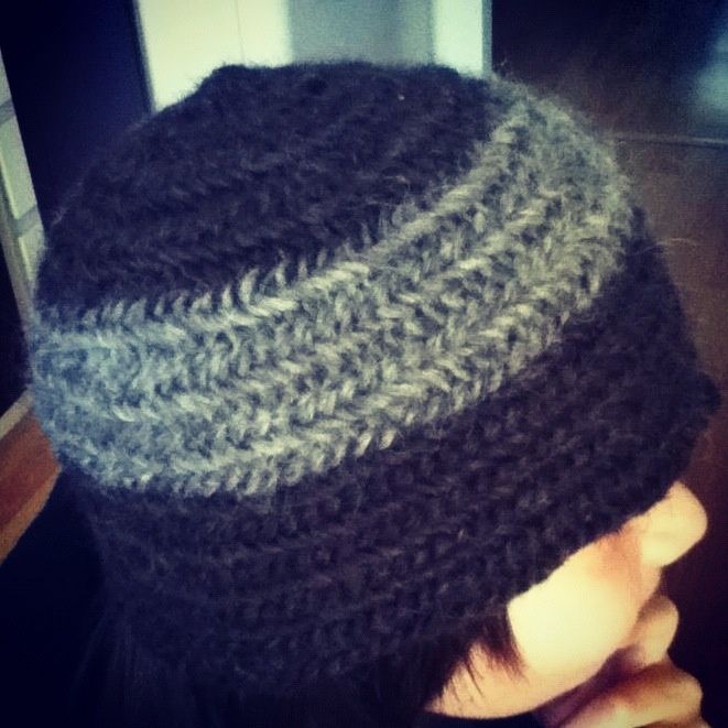 "Voici une tuque que j'ai fait avec la technique du Naalbinding. J'ai utilisé le point Mammen. La laine utilisée est de la 'alafoss lopi' d'Islande qui donne une texture plus légère que la grosse laine filée à la main. La fibre en elle-même est plus 'aérienne' si on peut dire ça comme cela." Freya Leonisdottir